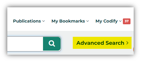 Step 1: Next to the search bar at the top of the Codify by AAPC page, click Advanced Search.